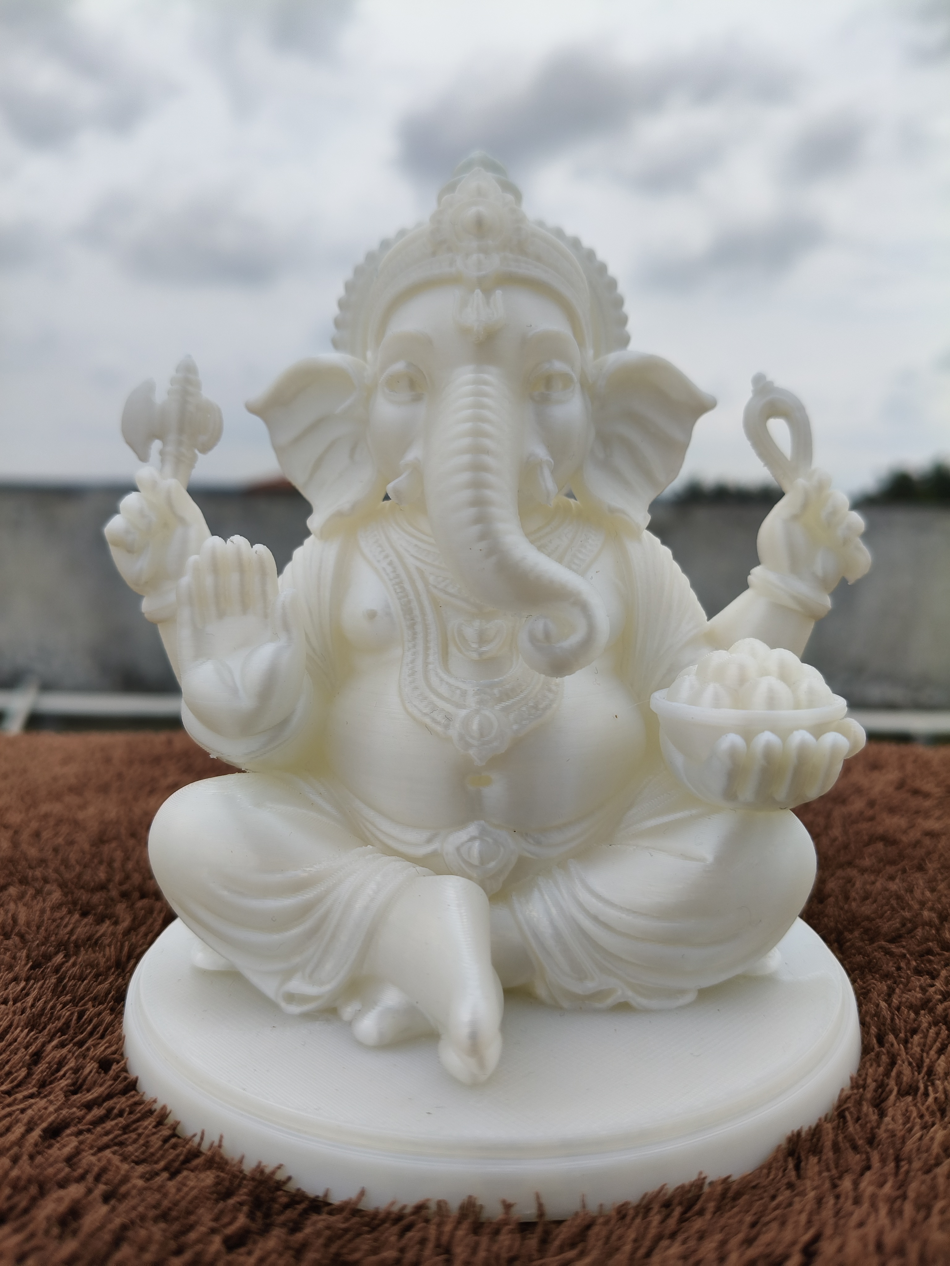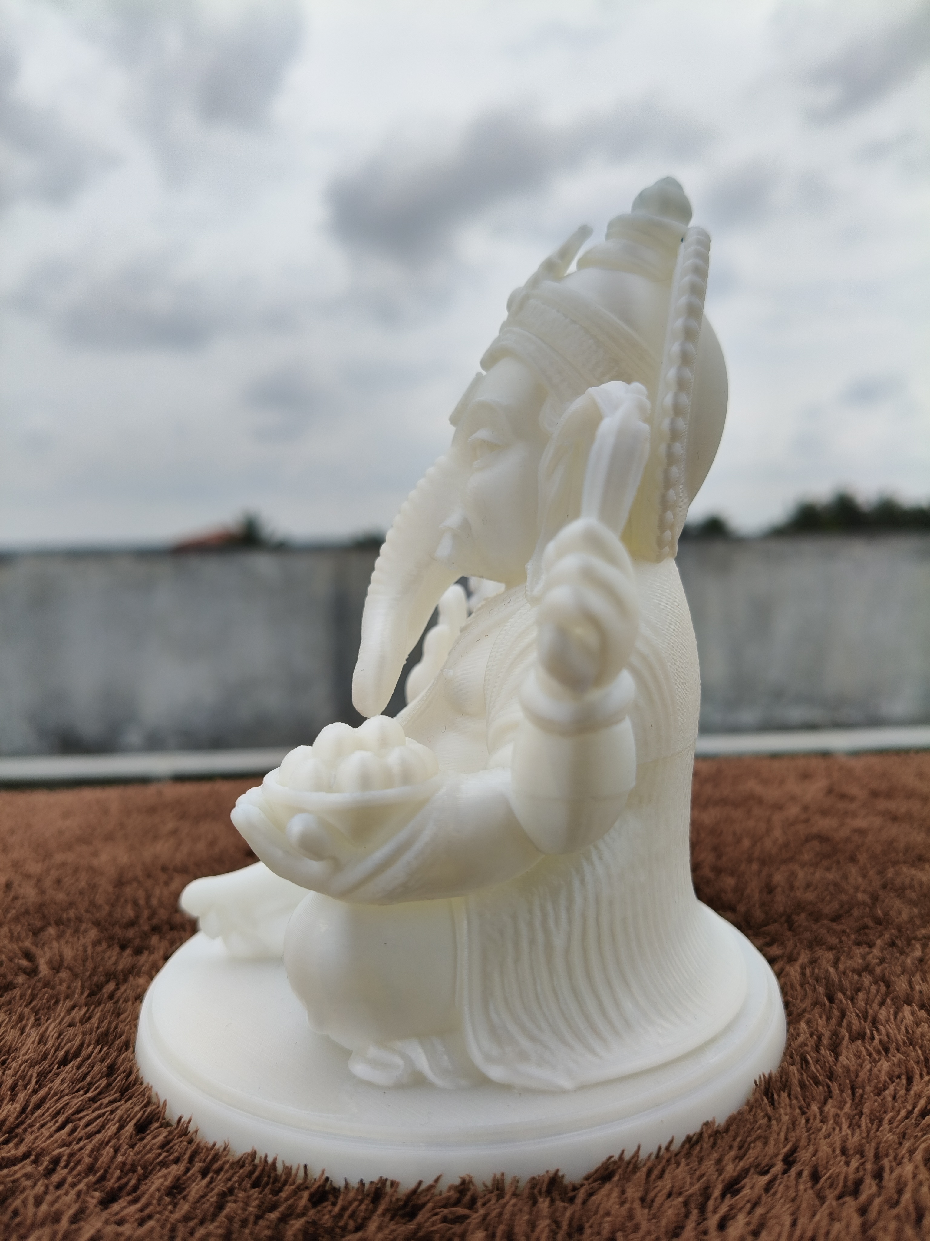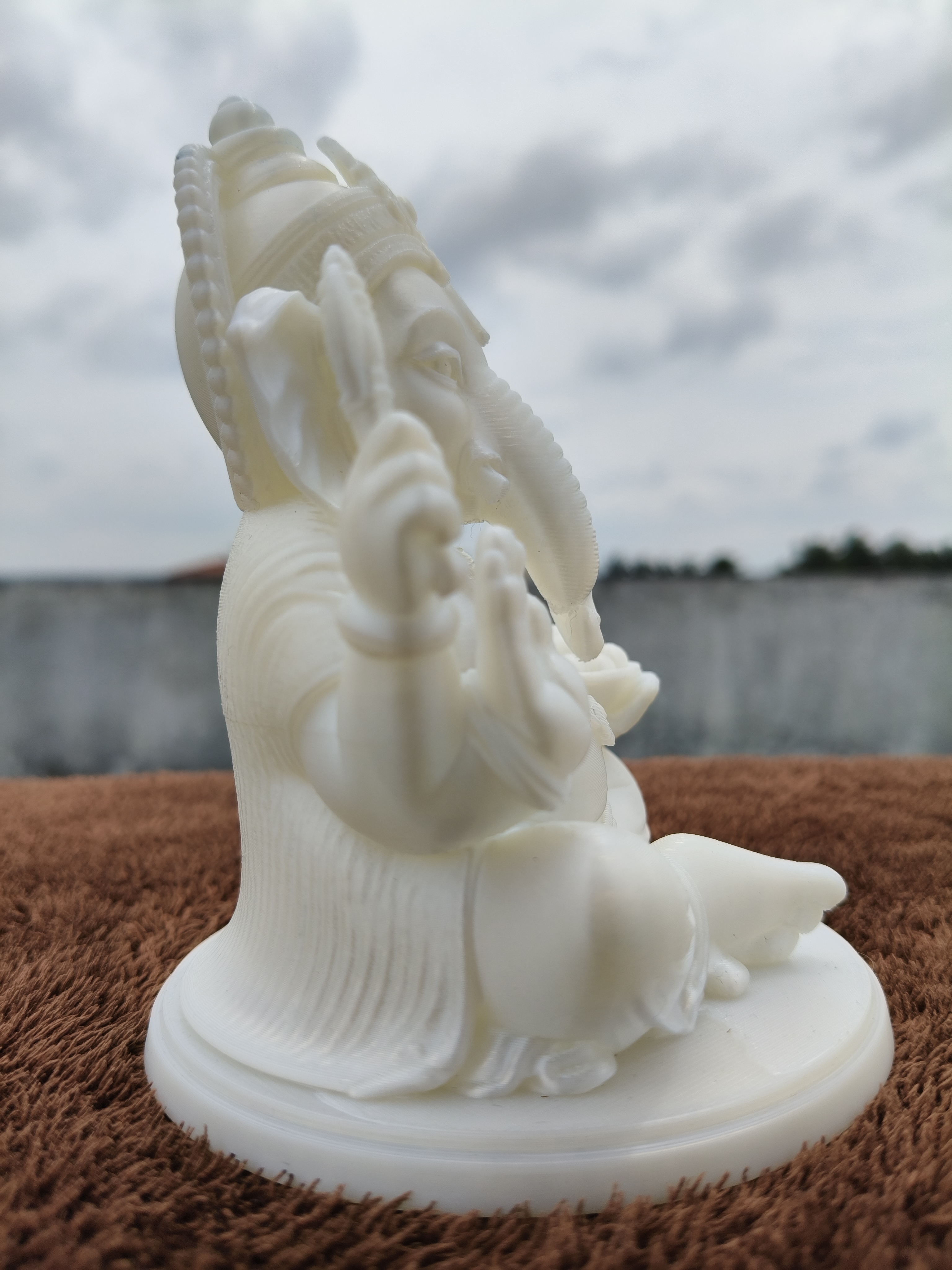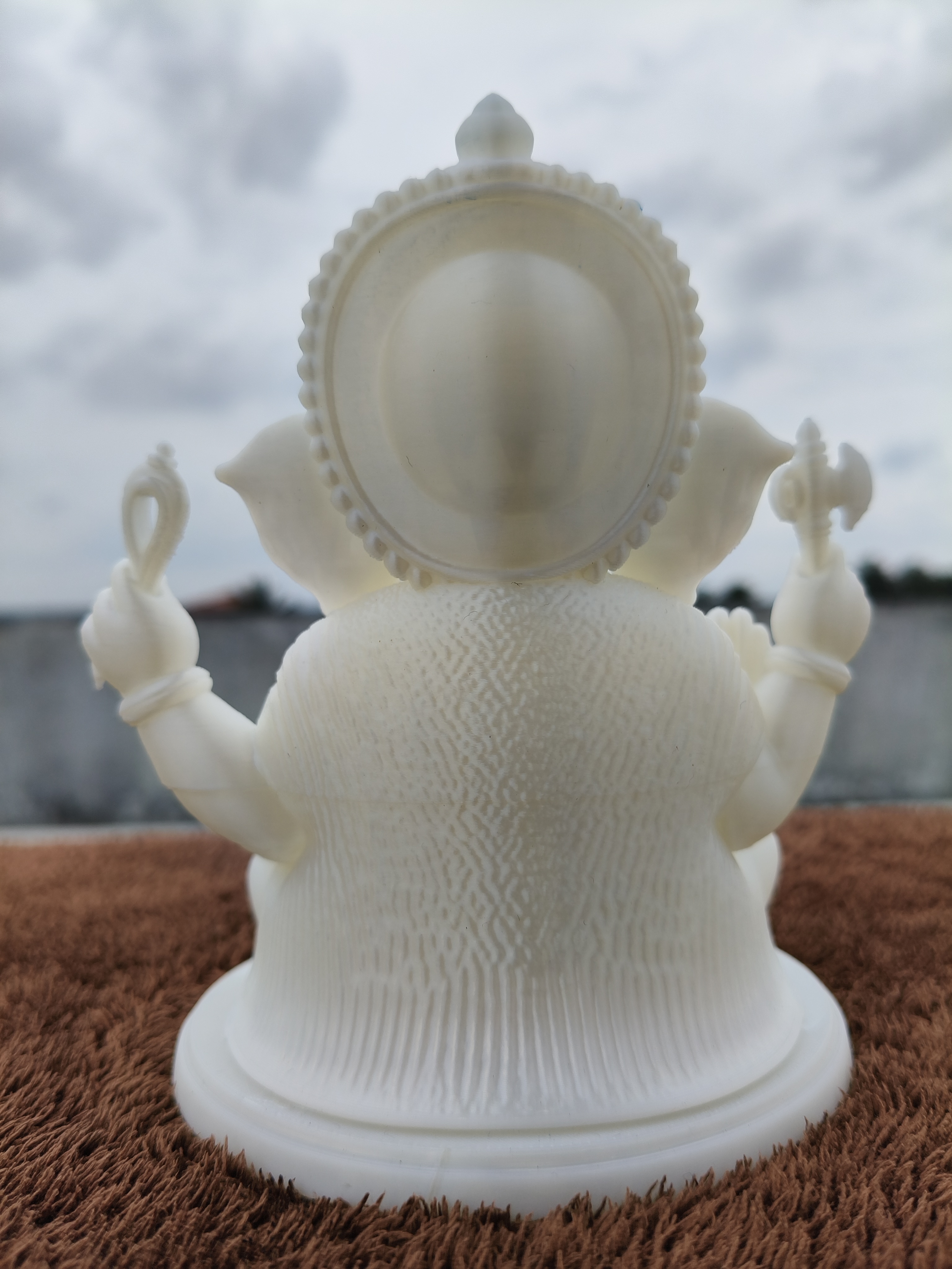 A glossy white Ganesh idol measuring approximately 12 cm in height and 9.5 cm in width, crafted with intricate detailing and a premium smooth finish. Ideal for pooja rooms, home décor, or gifting with a serene and elegant presence. A glossy white Ganesh idol measuring approximately 12 cm in height and 9.5 cm in width, crafted with intricate detailing and a premium smooth finish. Ideal for pooja rooms, home décor, or gifting with a serene and elegant presence.